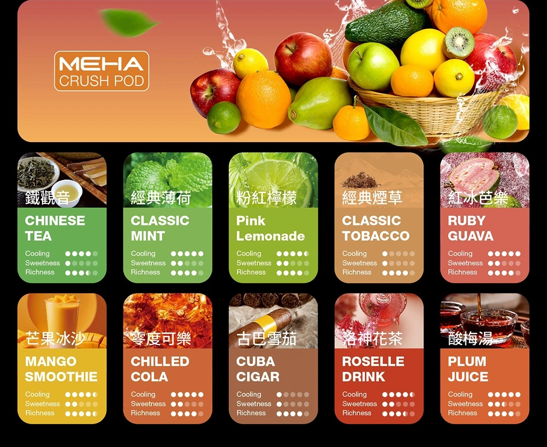 MEHA五代煙彈震撼登場,專為追求極致口感的潮流用戶打造!這款電子煙煙彈擁有2.5ml的大容量設計,配合創新雙重霧化技術,能夠精準還原豐富的層次風味。無論是清爽的水果系還是醇厚的經典菸草,MEHA電子煙彈都能滿足你對口感的所有渴望。