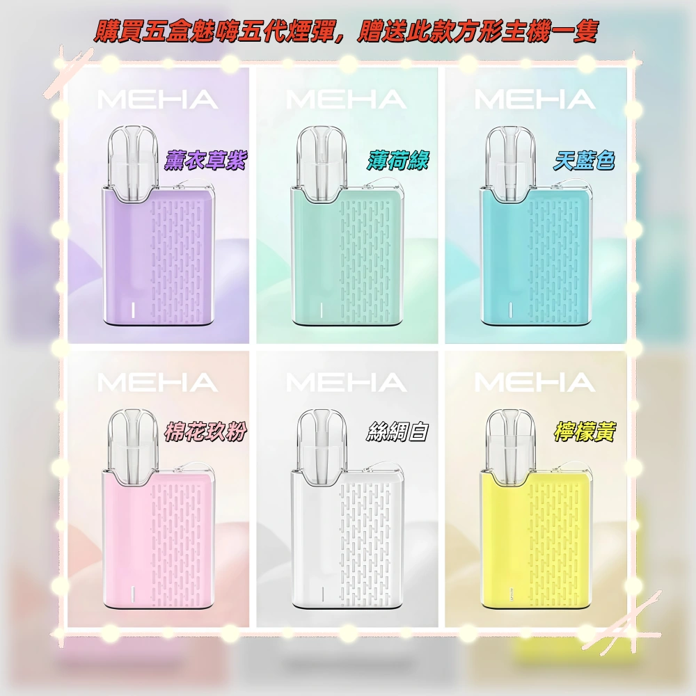 (限時活動:購買五盒MEHA魅嗨五代煙彈,贈送一隻MEHA五代方形主機